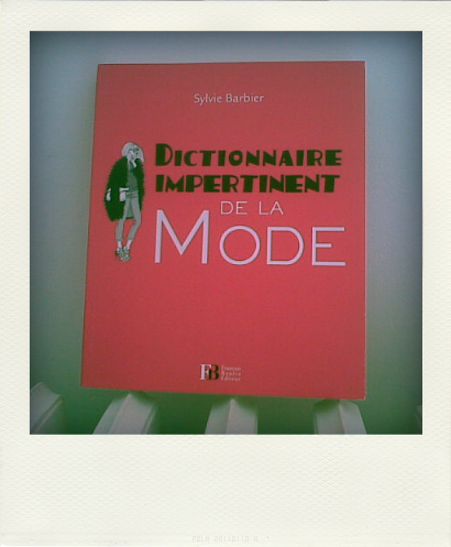 – Sylvie Barbier, auteur du ‘Dictionnaire impertinent de la mode’, est aujourd’hui journaliste de terrain (ex-journaliste à Cosmopolitan, reporter à Marie-France puis rédactrice en chef à Marie Claire et Biba) ; elle propose ici une version drôle des mots qui font la mode, sur maquette moderne et aérée très agréable, parsemée de jolies illustrations d’Isabelle Oziol de Pignol, très subtiles. Dans la collection des ‘impertinents’, notez la gastronomie, la Chine ou la politique…