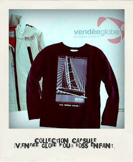 Alex Thomson pilote pour la 3ème fois le bateau Hugo Boss. A cette occasion, Boss Enfant, la ligne junior de la marque, lance une collection capsule pour les 4/16 ans, aux couleurs de la grande voile. 1 polo blanc à col orange, 1 t-shirt blanc à manches courtes, 1 tee-shirt noir à manches longues, 1 cardigan noir en molleton à capuche, 1 parka zippée imperméable gris clair sont actuellement en vente dans une sélection de grands magasins et de multimarques, à partir de 32 euros.
