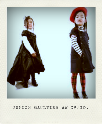 Jean-Paul Gaultier baptise sa ligne enfant Junior Gaultier. Elle adopte les codes de la marque et revisite ainsi, la marinière, l’écossais, l’esprit « falbala », le cuir, le smoking, en l’adaptant au monde de l’enfant. Les premières pièces sont présentées lors du défilé PAP AH 2009 2010. Le succès est au rendez-vous : la presse française et du monde entier font son éloge et le créateur se prête volontiers aux interviews.