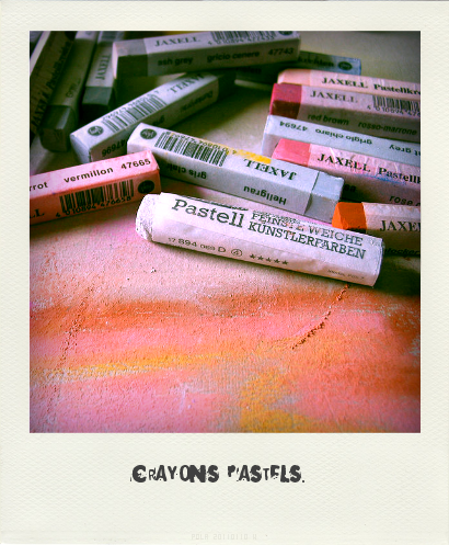 A l’origine, Les pastels sont des bâtonnets de couleur utilisés en dessin et peinture et sont composés de pigments, d’une charge et d’un liant. Il existe les pastels secs (tendres ou durs) et les pastels gras (à l’huile ou à la cire).
