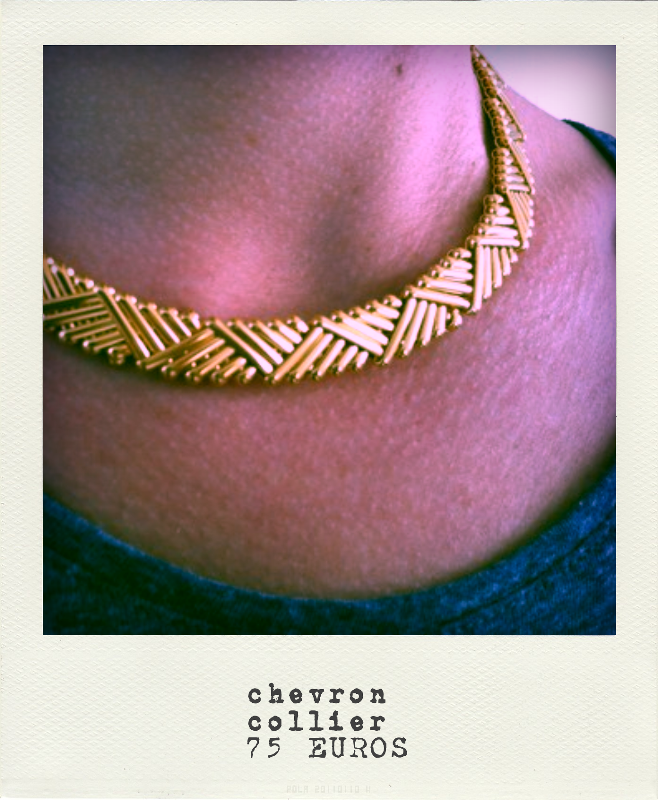 Ne manquez le bijou indispensable de l’été 2014 : le collier ‘Chevron’, joli bijou doré à l’or fin 24 carats.